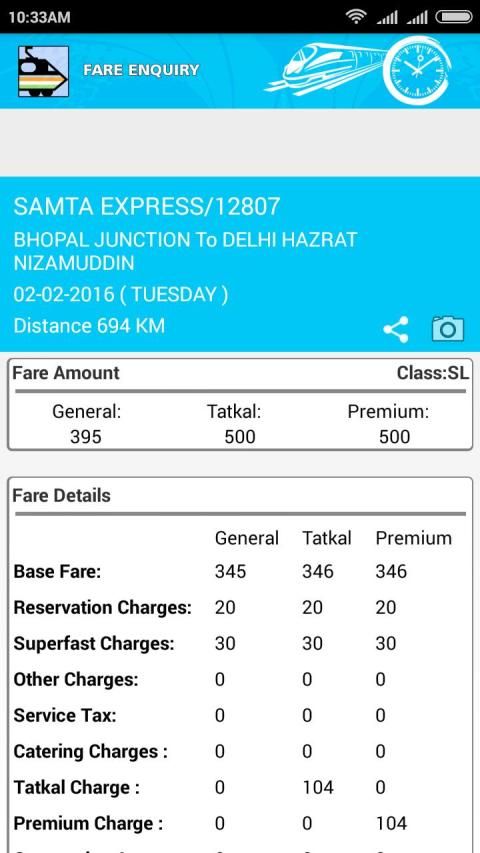 3. Fare Enquiry: Indian Railways fares get updated quite frequently these days, so to get the latest fare between any two stations in the chosen class of travel, just use this app. Because the information provided is directly coming from IRCTC / Indian Railways, you can be sure that it is authentic.