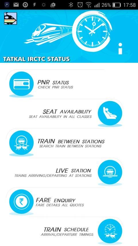 'Tatkal' - Instant... Tatkal IRCTC Status provides IRCTC information instantly on your Android devices. Its an amazing app providing access to all IRCTC info and status on your fingertips. Get services such as;