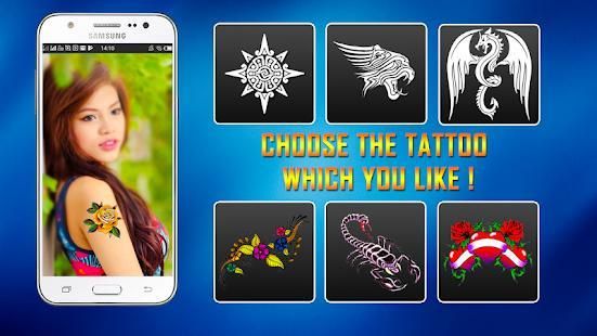 Tatoo Your Photo - Photo Editor app lets you try new tattoo designs, without any pain! Tattoo yourself on your own photos. Using our Tatoo My Photo with Boys and Girls Body app you will feel like in a virtual tattoo salon or photo booth machine. Just choose a pic from gallery or take one using camera, choose the tattoo design that fits to your style, rotate, resize, save and share your effect!
