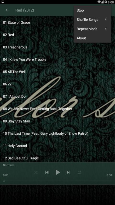इस एप्लिकेशन को आप उसके एलबम कि आप की तरह से सभी टेलर स्विफ्ट गाने स्ट्रीम करते हैं। क्योंकि वहाँ अभी भी जो गीत एमपी 3 टेलर स्विफ्ट की तरह प्रशंसकों का एक बहुत कुछ है, तो हम है कि इस तरह के रूप में टेलर स्विफ्ट पूरा एल्बम में एमपी 3 गाने का संग्रह होता एक आवेदन बना लिया है:
