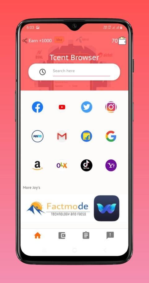 Tcent browser is only app that's provide you free Recharge's and Rewards Simple brows your needy website and earn Recharge • Home screen shortcuts - popular and useful website's