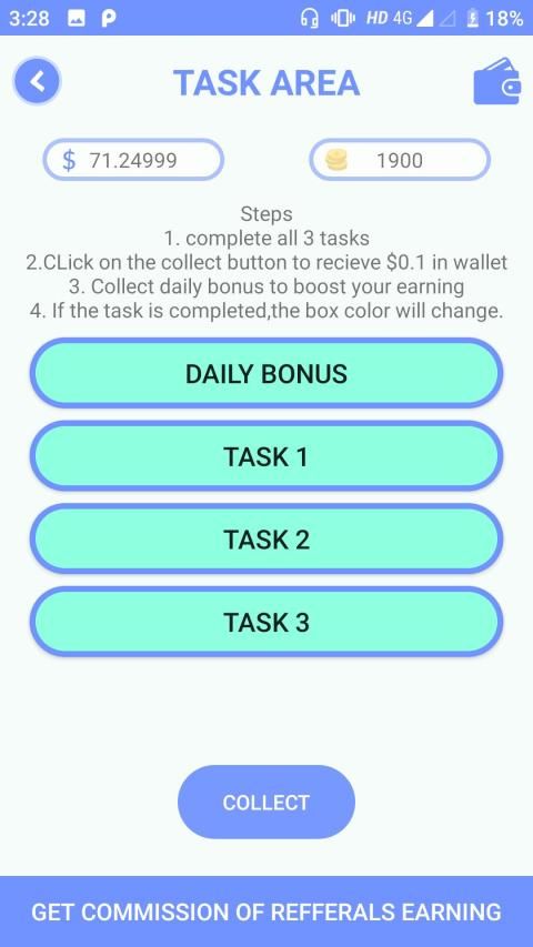 then click on the collect button to get your self earning.