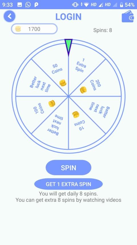 स्पिन सेक्शन: आप इससे सिक्के प्राप्त कर सकते हैं।
