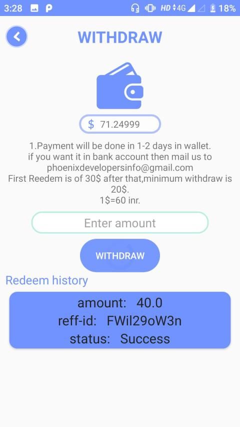 This is a MLM application in which you can earn money from your refferals
