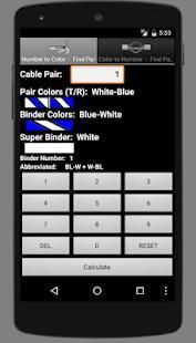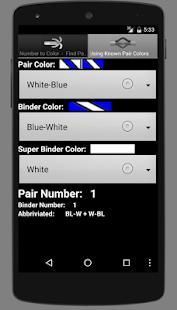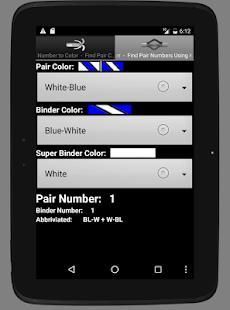 You can type in a cable pair number and it will display the pair color, binder color, binder group, super binder group, and the color abbreviation that this pair would be written in.