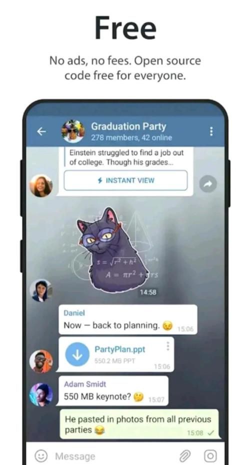 100% FREE: Telegraph Messenger is free and will always be free. We are not going or introduce subscription fees.