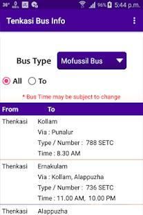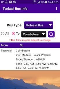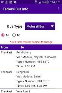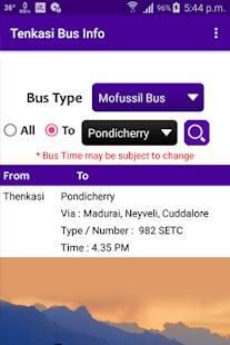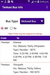 This app provide all information about Tenkasi Mofussil bus and Town bus.