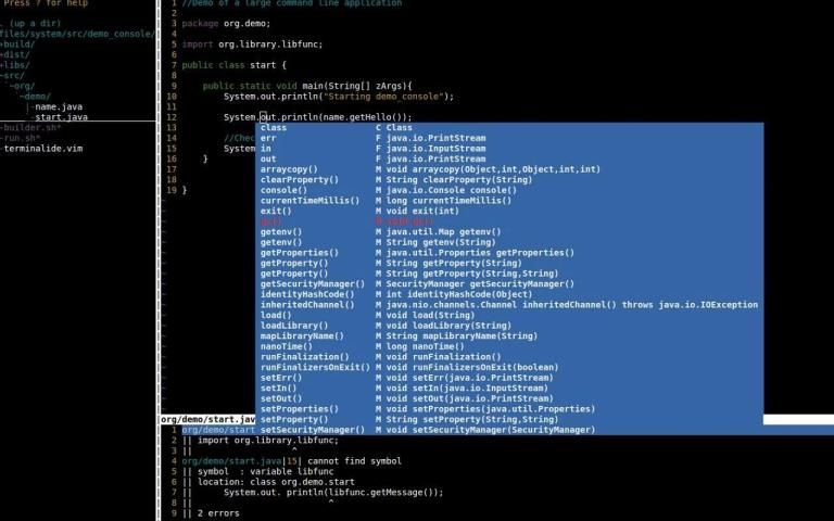 The vim editor has been setup with c / java / HTML development in mind and is extremely powerful. Also vim has been setup by default in a humane way (arrow keys work, backspace..), so that starting on this long and glorious journey won't begin with a punch in the face.