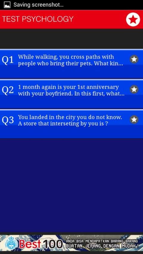 All high quality mobile apps are available for free download. 20,000+ users downloaded Test psikologi latest version on 9Apps for free every week! More functions were added in this app. This hot app was released on 2017-06-25. You’ll want to use it on your own phones after you know more.