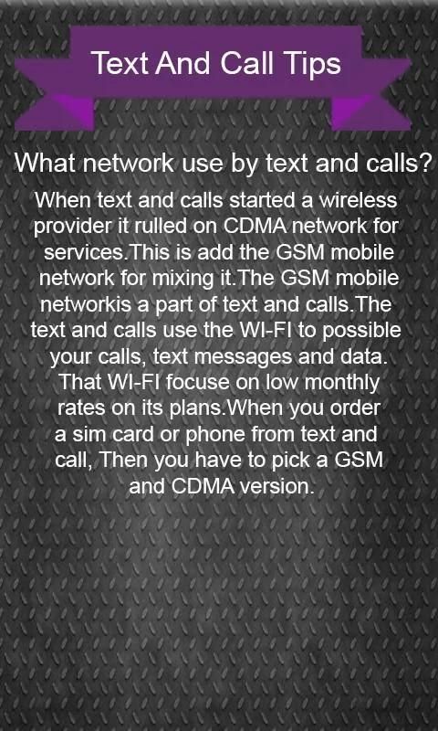 Text Now: Text and Call Free Tips a is free android guide app for sending text sms and making voice calls to others. Text Now : Text and Call Free Tips is free app which provide you different numbers of different countries which makes you able to call these countries free with any number of your choice. Text and calls tips allow you to make outgoing calls and receive incoming coming calls. Text and Call tips mobile free app allows send or receive text messages to these countries free. Make fun with friends by sending them SMS from another country number.
