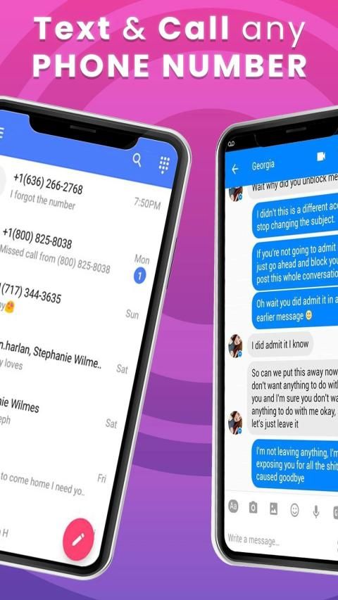 बिना किसी झिझक के मुफ्त कॉलिंग के साथ यूएस और कनाडा नंबर के लिए मुफ्त टेक्स्टिंग। एक और नंबर जोड़ने और कई नंबरों के बीच स्विच करने के लिए नंबर बदलें
