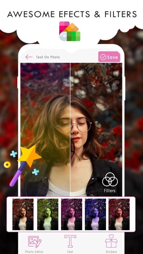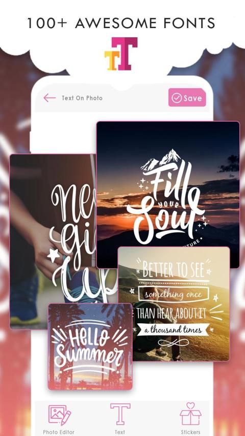 by using an awesome Text on Photo app lets you add beautiful typography on photos however you like. At that same time, combine it with various filters, cool stickers, stunning frames and artwork to help you make beautiful, rich and creative photos.