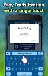 यह एक कुंजीपटल एप्लिकेशन की तरह है लेकिन लिप्यंतरण सुविधा के साथ है। स्थापना के बाद, पाठ लिप्यंतरण खोलने डाल विधि के रूप में और फिर "चैट transliterator सक्षम करें" पाठ transliterator के पहले विकल्प पर क्लिक करें फिर अपने सबसे तेजी से भयानक और मुफ्त लिप्यंतरण कीबोर्ड का आनंद लें।