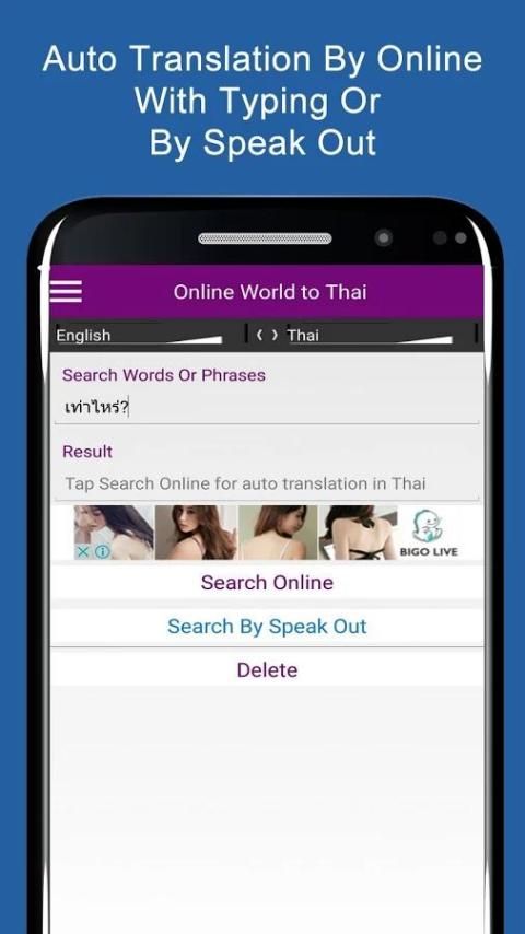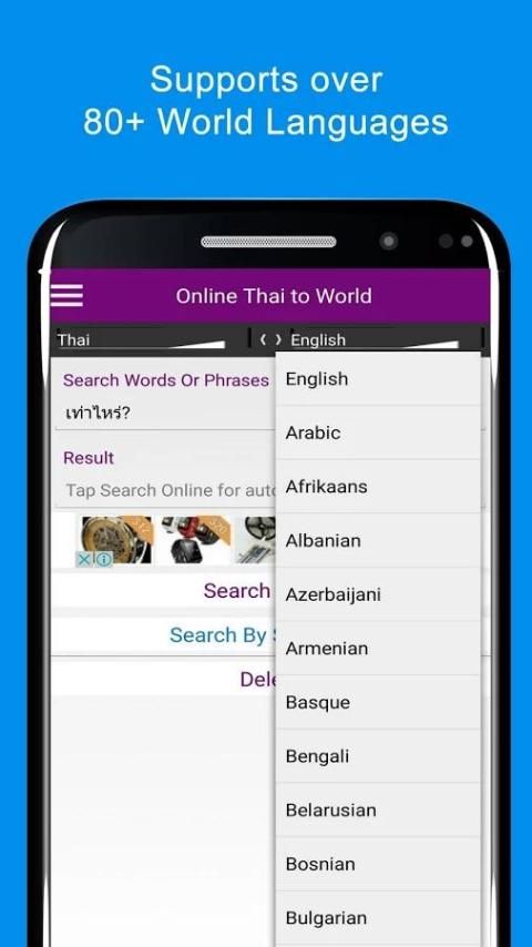 - समर्थन बोलो बिना टाइप करना होगा आप शब्दों और थाई और अन्य विश्व भाषाओं में वाक्यांशों के लिए खोज करने के लिए तेजी लाने के लिए पाठ