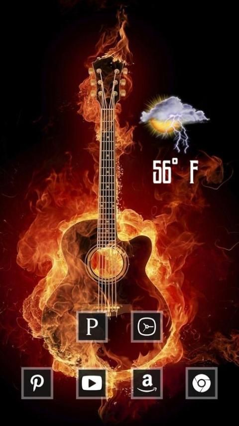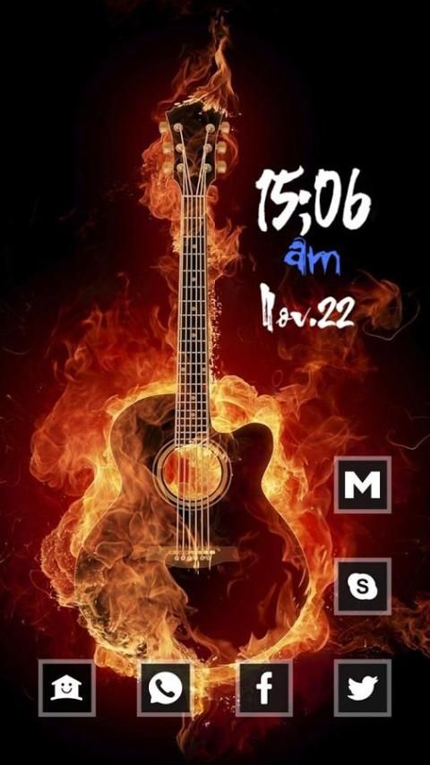 The theme of the wallpaper is the flame guitar. The background of the wallpaper is black, and the red flame takes up the whole wall. The red flame outline a red flame guitar, red flame shining, still smoking, particularly cool.