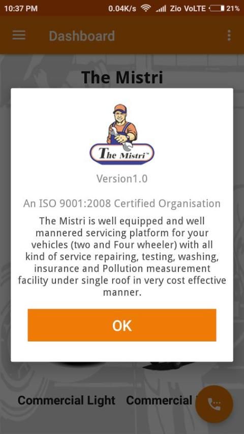 मिस्त्री बहुत लागत प्रभावी ढंग से एक ही छत के नीचे सेवा मरम्मत, परीक्षण, कपड़े धोने, बीमा और प्रदूषण माप की सुविधा के सभी प्रकार के साथ अपने वाहन (दो और चार पहिया वाहन) के लिए अच्छी तरह से सुसज्जित और शिष्ट सर्विसिंग मंच है।