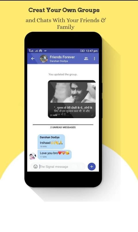ग्रुप चैट: अपने संपर्कों के साथ समूह चैट का आनंद लें ताकि आप आसानी से अपने दोस्तों या परिवार के संपर्क में रह सकें।