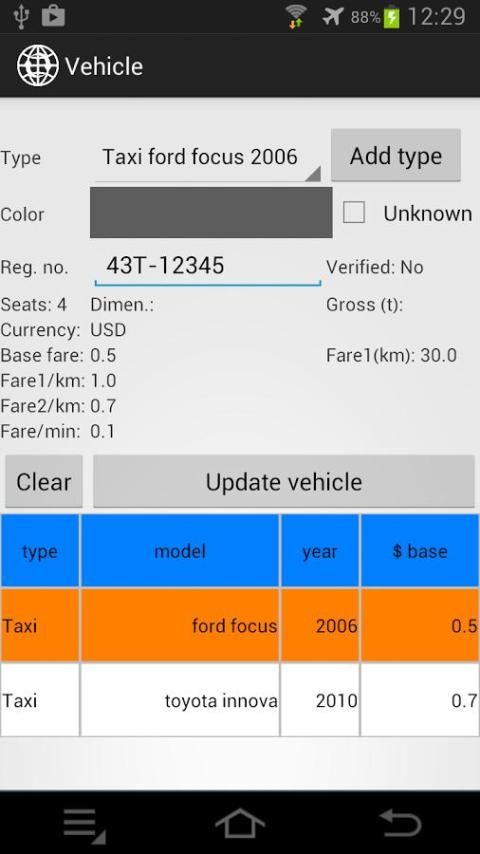 Vehicles and fares settings.