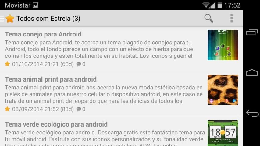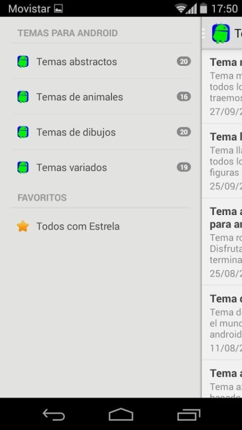 आवेदन में हम आप चाहते हैं छोड़ दिया साइडबार विषयों में चयन और आप उन्हें डाउनलोड कर सकते हैं तो फिर उनमें से हर एक का उपयोग कर सकते हैं। यह पूरी तरह से स्वतंत्र है और सभी विषयों अपने Android मोबाइल के लिए अद्वितीय अनुकूलन का एक स्पर्श दे देंगे, काम करते हैं।