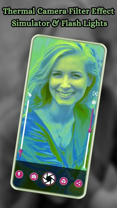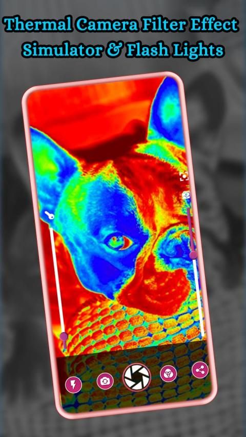 थर्मल कैमरा फ़िल्टर इफ़ेक्ट सिम्युलेटर एंड फ्लैश लाइट्स ऐप में आप छवि को अलग प्रकार और मज़ेदार बना सकते हैं।