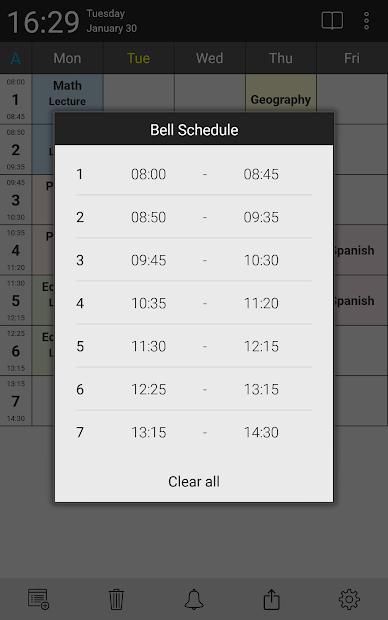 अच्छा और सरल एप्लिकेशन को आप स्कूल या विश्वविद्यालय के लिए अनुसूची रखने में मदद मिलेगी। बस अपने अनुसूची एक बार दर्ज करें और हर दिन का उपयोग करें!