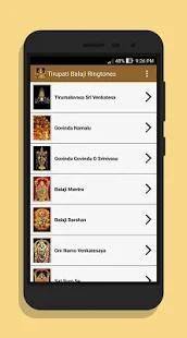ओम वेंकटेश्वर नमो नमः, गोविंदा namalu, श्रीनिवास गोविंदा, भगवान वेंकटेश्वर गीत - - गोविंदा गोविंदा ओ श्रीनिवास, बालाजी दर्शन - कभी हो Fursat बालाजी को, भजन - तिरुपति बालाजी आरती, tirumalavasa श्री वेंकटेश, बालाजी मंत्र की तरह तिरुपति बालाजी रिंगटोन के सभी संग्रह जाओ girivasa, सुप्रभातम और अन्य भगवान वेंकटेश्वर बालाजी छवियों के साथ रिंगटोन। इन सभी रिंगटोन आप इस एप्लिकेशन को डाउनलोड मुक्त होते हैं।