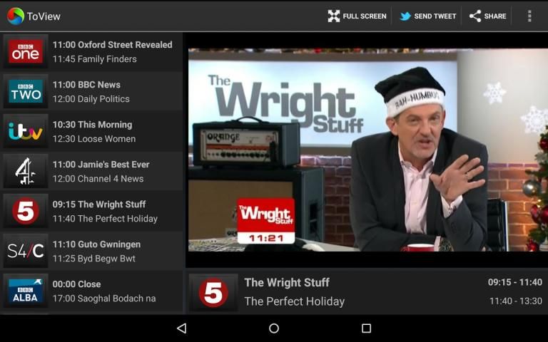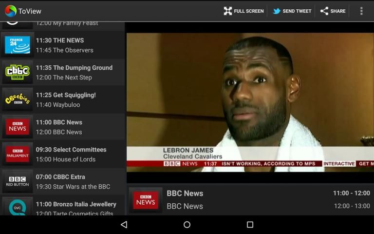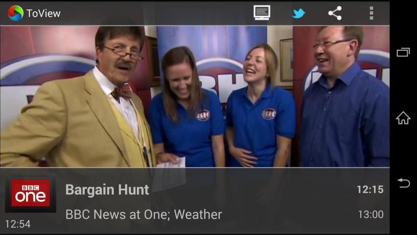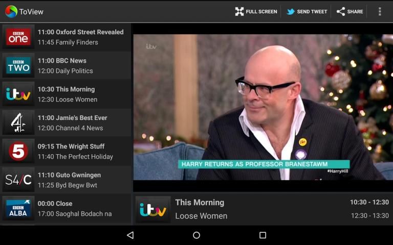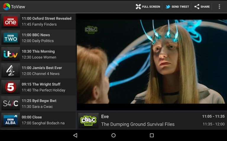 ToView brings live television to your Android device. With its familiar television features, ToView is an easy to use service for watching live TV over an internet connection. At home whilst the soaps are on, or on the move, wherever you are.