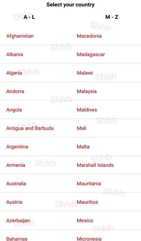 Select your country, you can change it any time