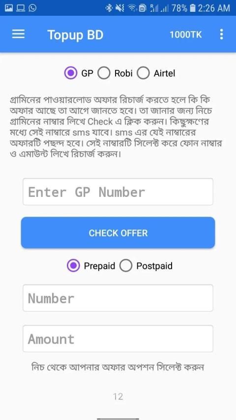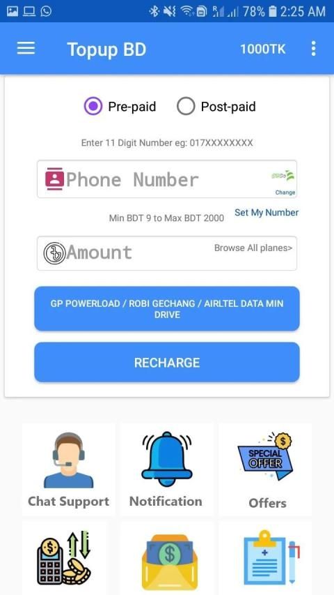 User can easily recharge their sim from this section. No need to type your own number and No need to set the operator.Our app will auto select the Operator.But if You change your operator then you can change it easily.