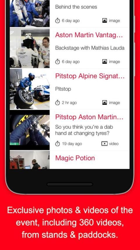 - विशेष कहानियां: पर्दे के फ़ोटो और वीडियो 360 सहित मुख्य मोटरस्पोर्ट्स घटनाओं, खड़ा है और paddocks से, के वीडियो के पीछे। टीमों और पायलटों के साथ फेसबुक और पेरिस्कोप के माध्यम से लाइव कवरेज।