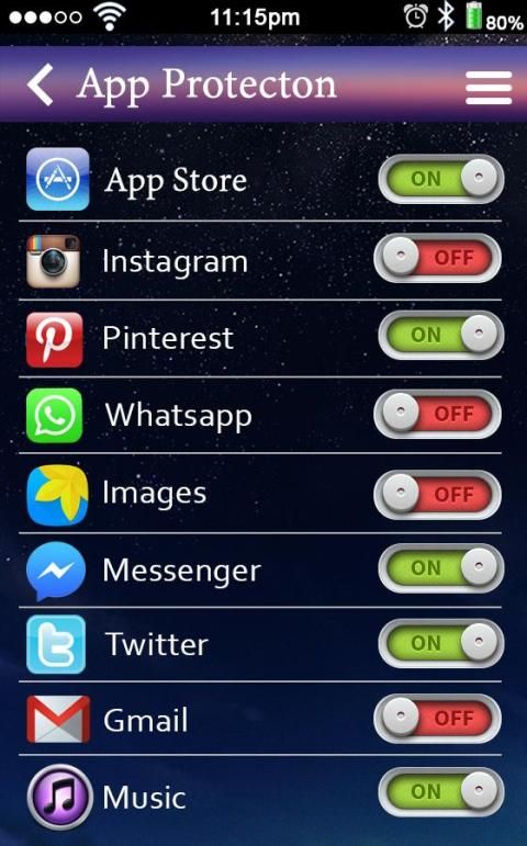 आप किसी भी आवेदन access.Selected एप्लिकेशन को आपके स्मार्ट फोन से गायब नियंत्रित करने के लिए, और एक आसान करने के लिए उपयोग पिन पैड या पैटर्न लॉक के पीछे बंद रहने सकती है।