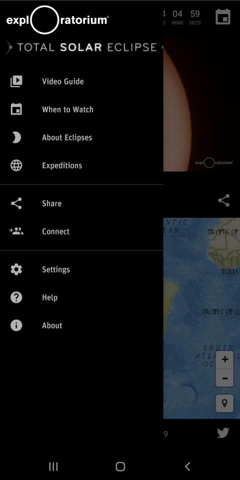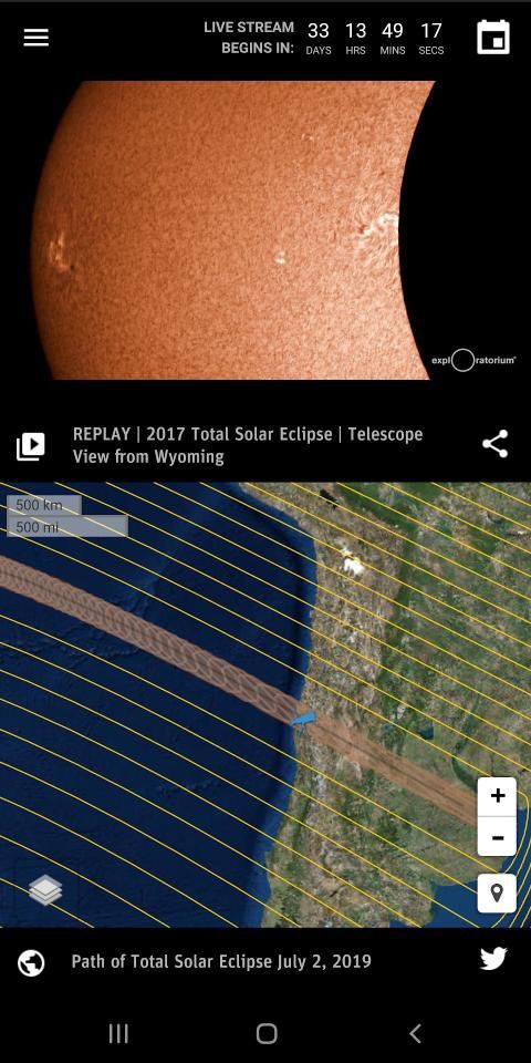 • Follow the conversation on Twitter using #eclipse2019, #eclipse2020, #solareclipse, and #totalsolareclipse in the app's Twitter View and share your tweets about the eclipse.