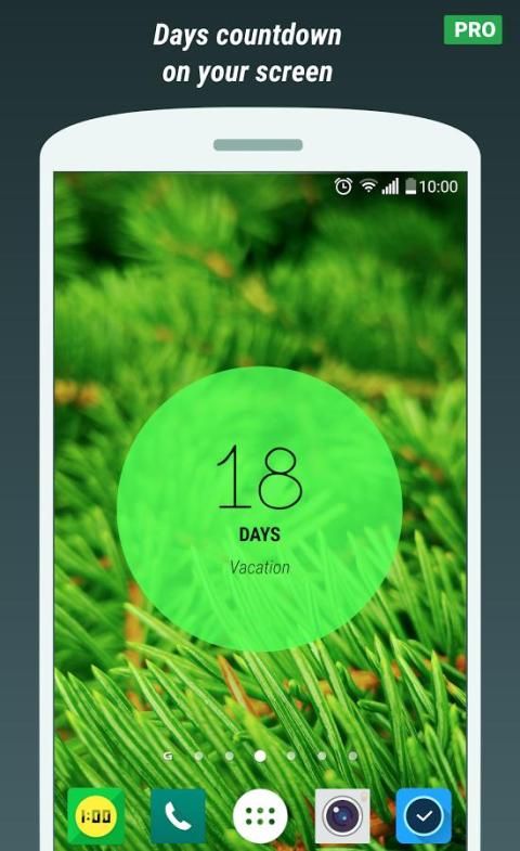 • एक विशेष तिथि के लिए दिन की उलटी गिनती (एक विन्यास संवाद पर बदला जा सकता है)
