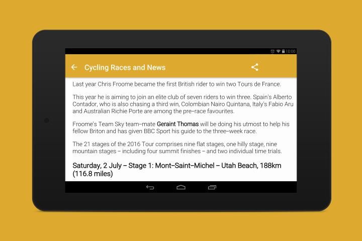 • View major Cycling events breaking news from different sources