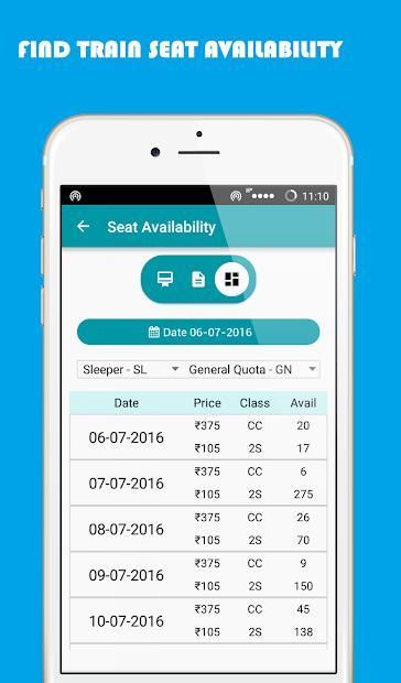 5. सीट उपलब्धता चयनित तिथि के लिए।