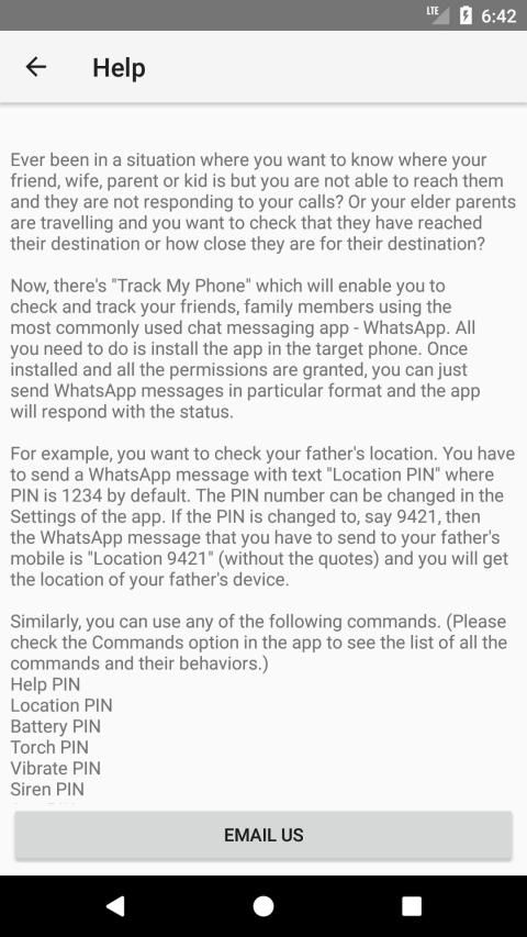Track My Phone is an app using which you can track your phone and know it's location, battery charge and also track it physically by playing a loud siren, vibrate the phone or simply turn on the flashlight. You can do all of this by just sending a WhatsApp message from other phone to your device.