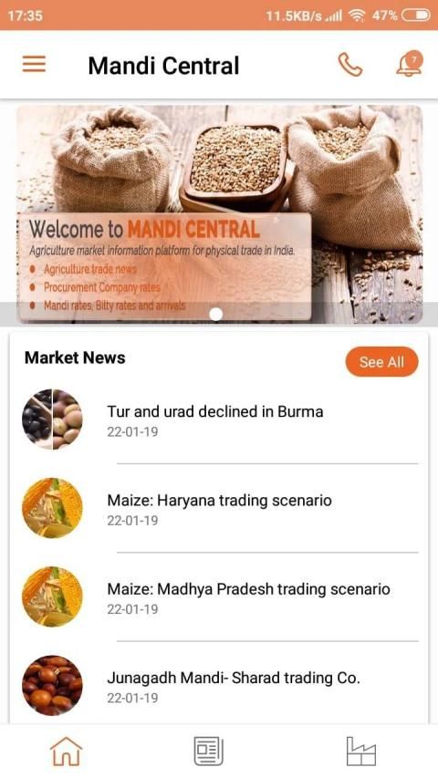 Mandi Central is an Indian agriculture App, which helps traders, brokers, farmers and procurement companies to take informed decisions by accessing agricultural information related to their needs. Mandi Central provides the latest mandi prices, bilty prices and all agriculture related news. It is available in English and Hindi.