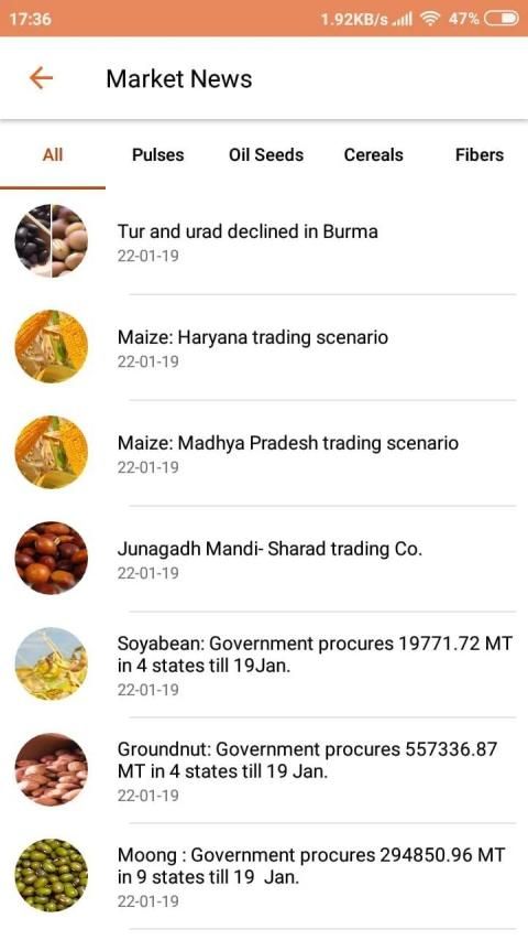 विशेषज्ञों से विश्लेषण के साथ, भारत में कृषि वस्तुओं के लिए दैनिक कृषि समाचार उपलब्ध कराया जाता है। कृषि समाचार आयात / निर्यात, बुवाई अद्यतन, मौसम अद्यतन, सरकारी योजनाओं, आदि से संबंधित दैनिक अद्यतन किए जाते हैं। भारतीय बाजार को प्रभावित करने वाले अंतर्राष्ट्रीय कृषि समाचार भी लगातार प्रदान किए जाते हैं। खबरों को सही मायने में उपलब्ध कराने वाले समाचारों को उपलब्ध कराने का हवाला देकर समाचार उपलब्ध कराया जाता है। व्यापारी और दलाल इन समाचारों को एक्सेस करके बेहतर व्यावसायिक निर्णय ले सकते हैं।