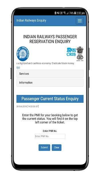 ट्रेन की स्थिति के साथ उपयोगकर्ता ट्रेन बुकिंग के बारे में पूरा कार्यक्रम प्राप्त कर सकता है।
