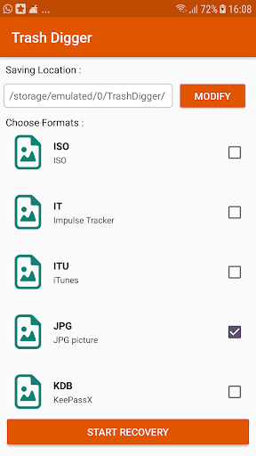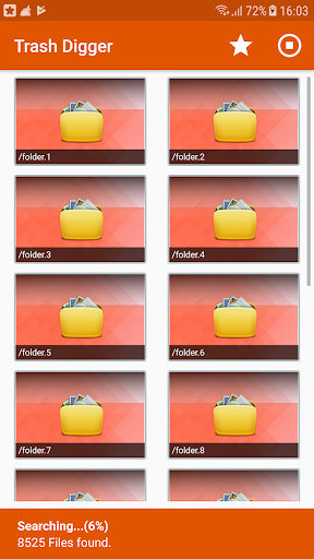: इस प्रकार के स्कैन के लिए रूट की आवश्यकता नहीं होती है, लेकिन यह केवल छवि खोज तक सीमित है।यह आपको एक अच्छा परिणाम देगा, लेकिन गहरे स्कैन के रूप में अच्छा नहीं है।और यह जेपीजी, पीएनजी, एमपी 4,3 जीपी, एमपी 3, एएमआर .... सहित अधिकांश ज्ञात प्रकारों का समर्थन करता है, लेकिन इसके लिए आपके फोन को रूट करने की आवश्यकता है।करने के लिए मेमोरी को स्कैन करने के लिए (आंतरिक संग्रहण, या बाहरी एसडी कार्ड) का चयन करना है।और परिणाम दिखाई देने के लिए प्रतीक्षा करें।