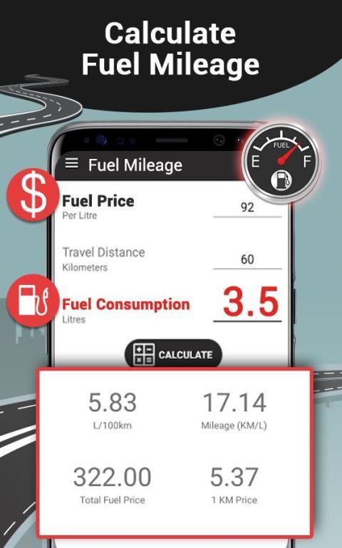 Mileage calculator app will allow you to calculate the total amount for the used fuel based on the fuel price selected by you. Speed calculator will also show you the mileage given by the vehicle based on the fuel used and Kilometer/Mile traveled/driven.