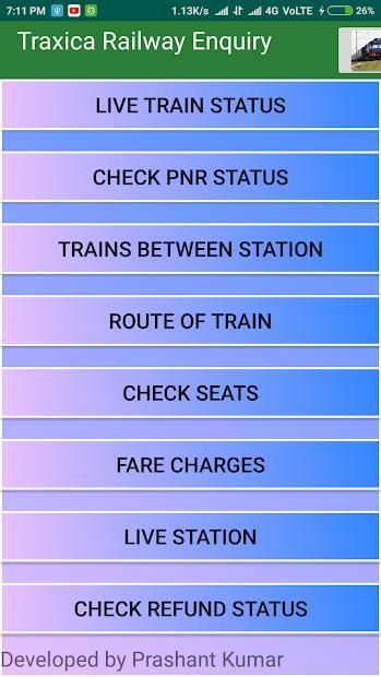 13. Station Name to Code - You can get the station code by entering Station Name.