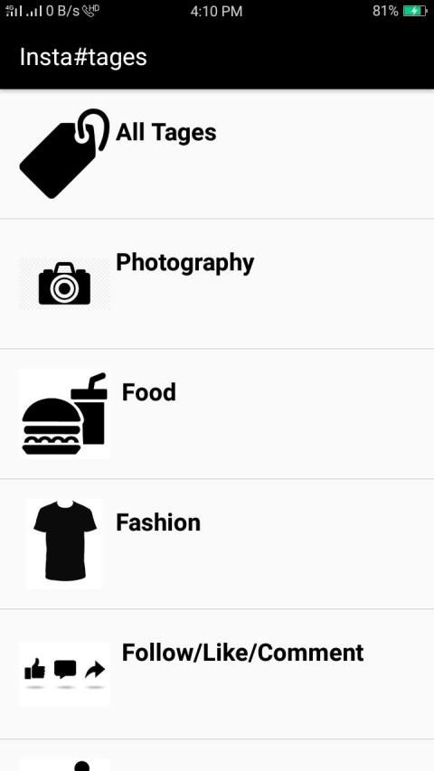 - हैशटैग ऐप आपके लिए कई हैशटैग श्रेणियां प्रदान करता है: