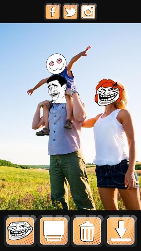 फोटो मजा शुरू करते हैं! अपने आप की तस्वीरें और समूह तस्वीरों के लिए - यह क्रोध चेहरा छवि संपादक आप एक सुंदर तस्वीर असेंबल की पेशकश करेगा. इस भयानक चेहरा परिवर्तक app आप देता है कि मेम स्टिकर के साथ अपने पसंदीदा pics सुशोभित और अपने सभी दोस्तों को पागलों की तरह हँसते हैं. ऐसी चुनौती को स्वीकार किया, मुझे Gusta, कॉलेज के नए, सफलता बच्चे के रूप में क्रोध कॉमिक्स पात्रों में से एक विस्तृत पसंद है, मैं भी खतरनाक तरीके से रहना पसंद, कष्टप्रद फेसबुक गर्ल, और बहुत ज्यादा है.