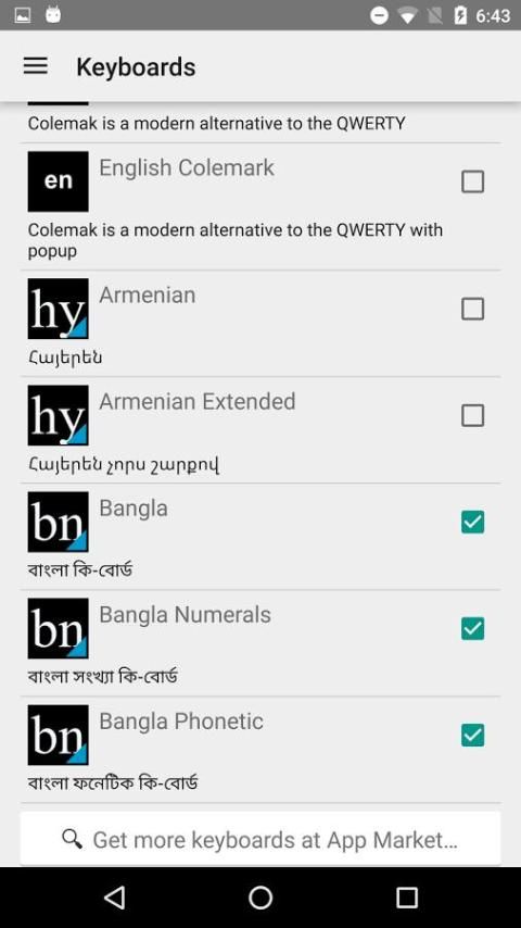 2.Select the desired layout from TruKey's Settings->Keyboards menu.