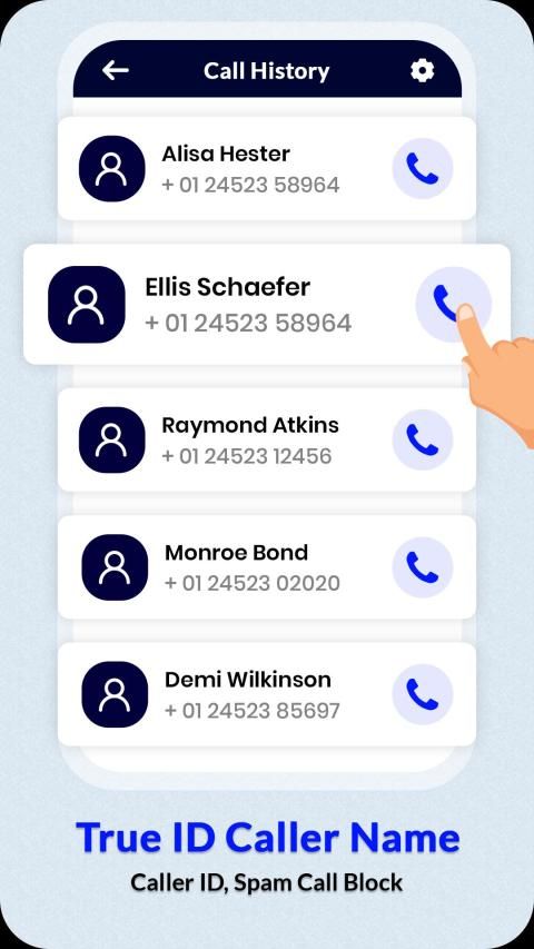 A Caller Id Name & Location Tracker anti-spam add on, to always identify the traces and identity of each true caller name behind unknown or private calls. Always know who's calling and control your callers! Know the true caller ID. Caller Id Name and Address See all the call history in the recent calls. Caller Id Name and Location Including the missed calls, completed incoming and outgoing Calls, no answer calls. As a mobile number locator, shows in detail the true caller name and caller location. Call block function call blacklist call blocker blocks unwanted calls. These call logs will also be shown.