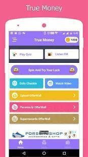 True Money have lots of option for earn money like Spin win, Play simple quiz, Daily Check in, Watch video and offers walls. True money is very easy to use every one can use and earn real money.
