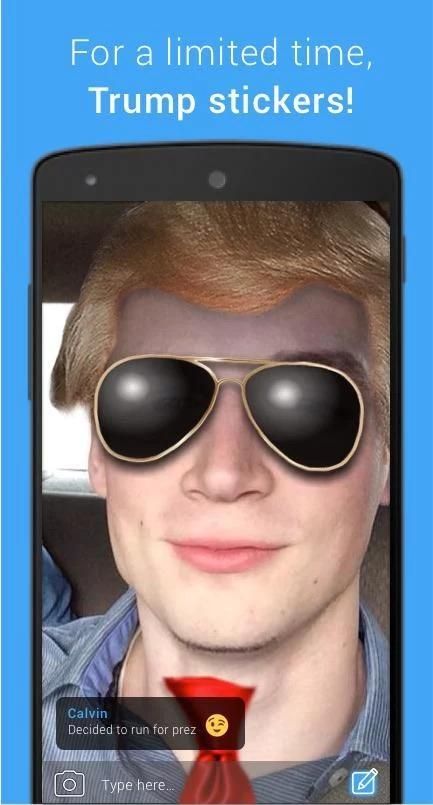 Trumpit आप एक सेल्फी स्टीकर चुनते हैं, एक तस्वीर तस्वीर और एक