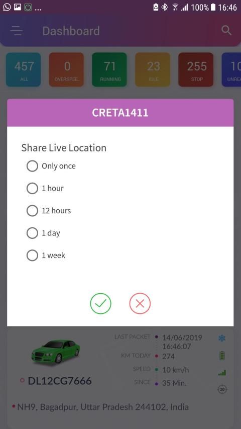Ttrack provide real time Vehicle Tracking to track your vehicle. With this you can always monitor your vehicle current state like vehicle position, vehicle state(Start/Stop/Move), Speed, A/C status.