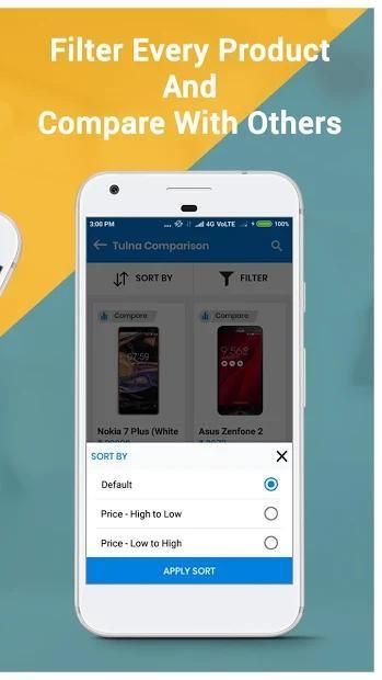 तुलना प्राइस तुलना ऐप आपको अमेज़ॅन, फ्लिपकार्ट, इंफिबैम, शॉपक्लूस, eBay और पेटम मॉल जैसे कई ऑनलाइन शॉपिंग स्टोर्स में कीमत की तुलना करने की सुविधा देता है। यह एक आसान ऐप है जो आपको खरीदने के लिए और कहां से खरीदने के लिए उत्पाद चुनने में मदद करता है।